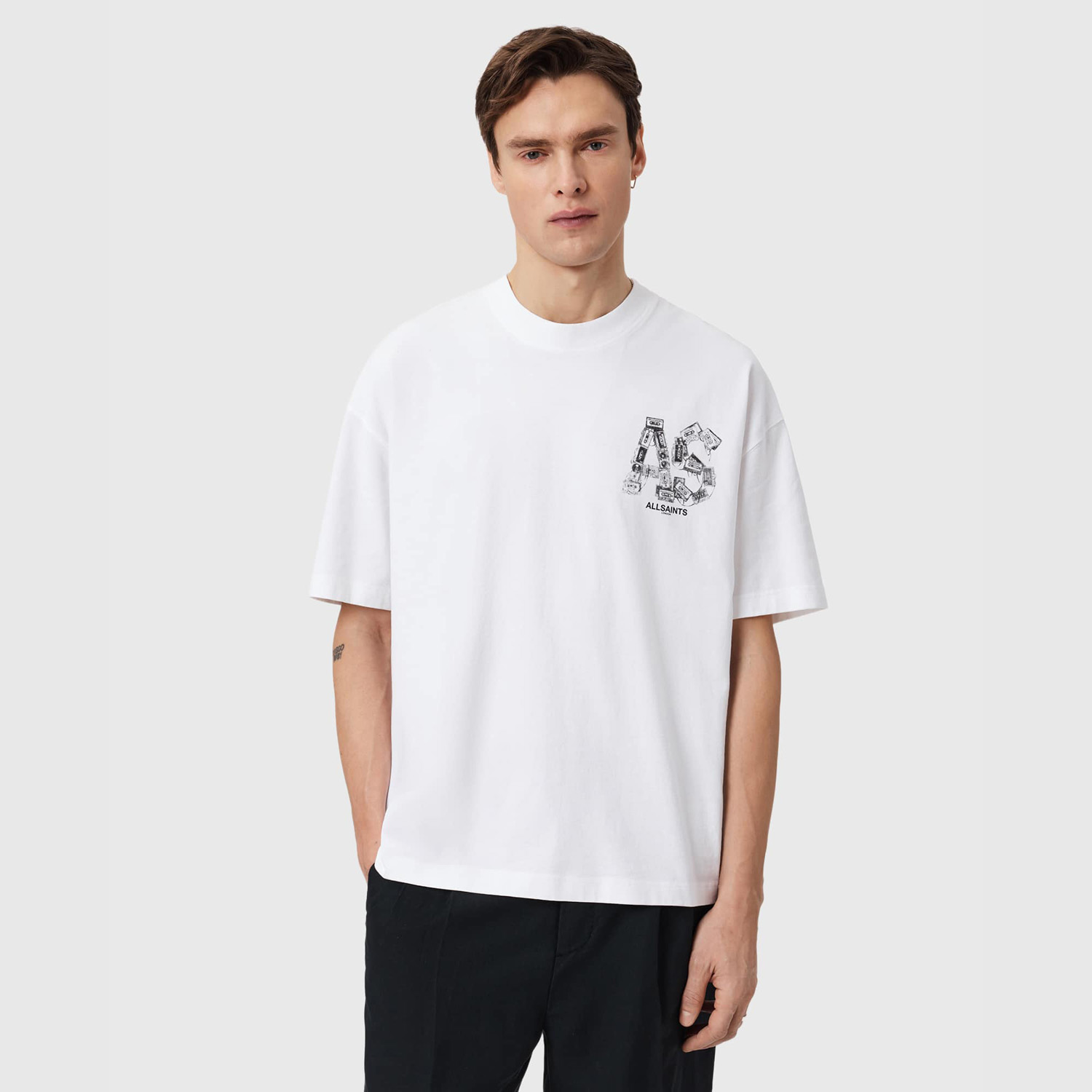 ALLSAINTS МЪЖКА БЛУЗА MIXTAPE SHORT SLEEVE CREW T-SHIRT В БЯЛО