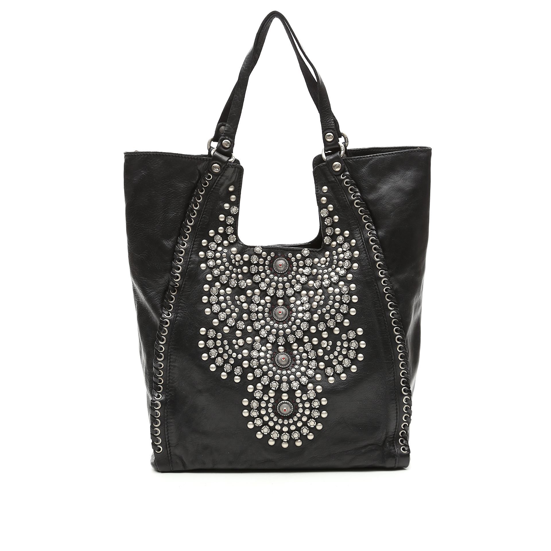 CAMPOMAGGI CAMELIA ДАМСКА КОЖЕНА ШОПЪР ЧАНТА С КАПСИ В ЧЕРНО