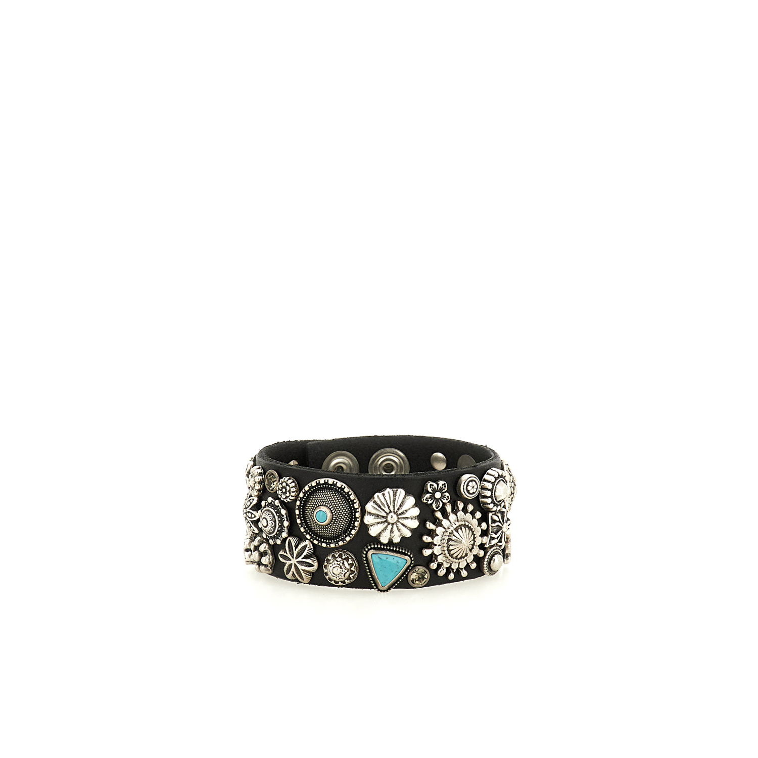 CAMPOMAGGI ДАМСКА КОЖЕНА ГРИВНА С КАПСИ В ЧЕРНО