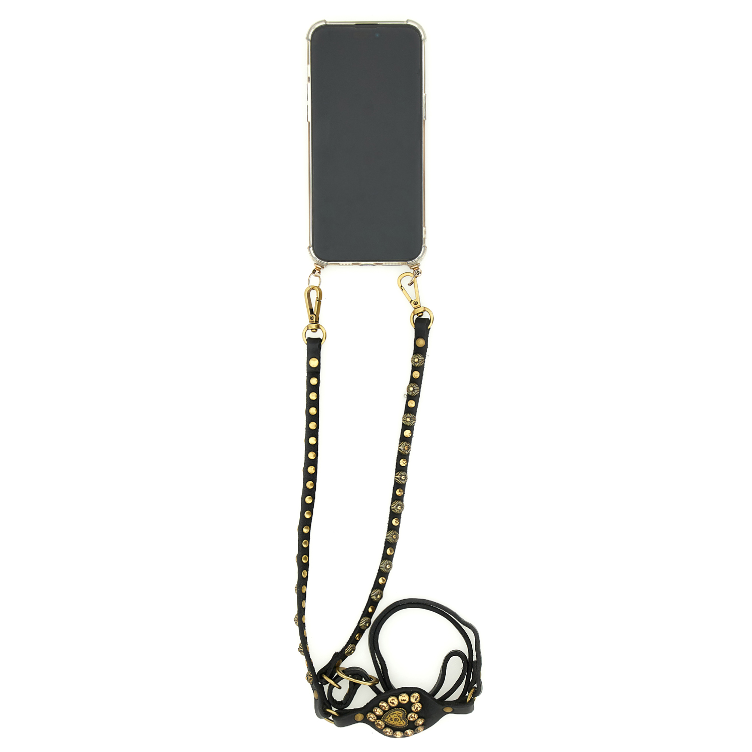 CAMPOMAGGI ДАМСКА КОЖЕНА КАИШКА ЗА ТЕЛЕФОН С КАПСИ В ЧЕРНО