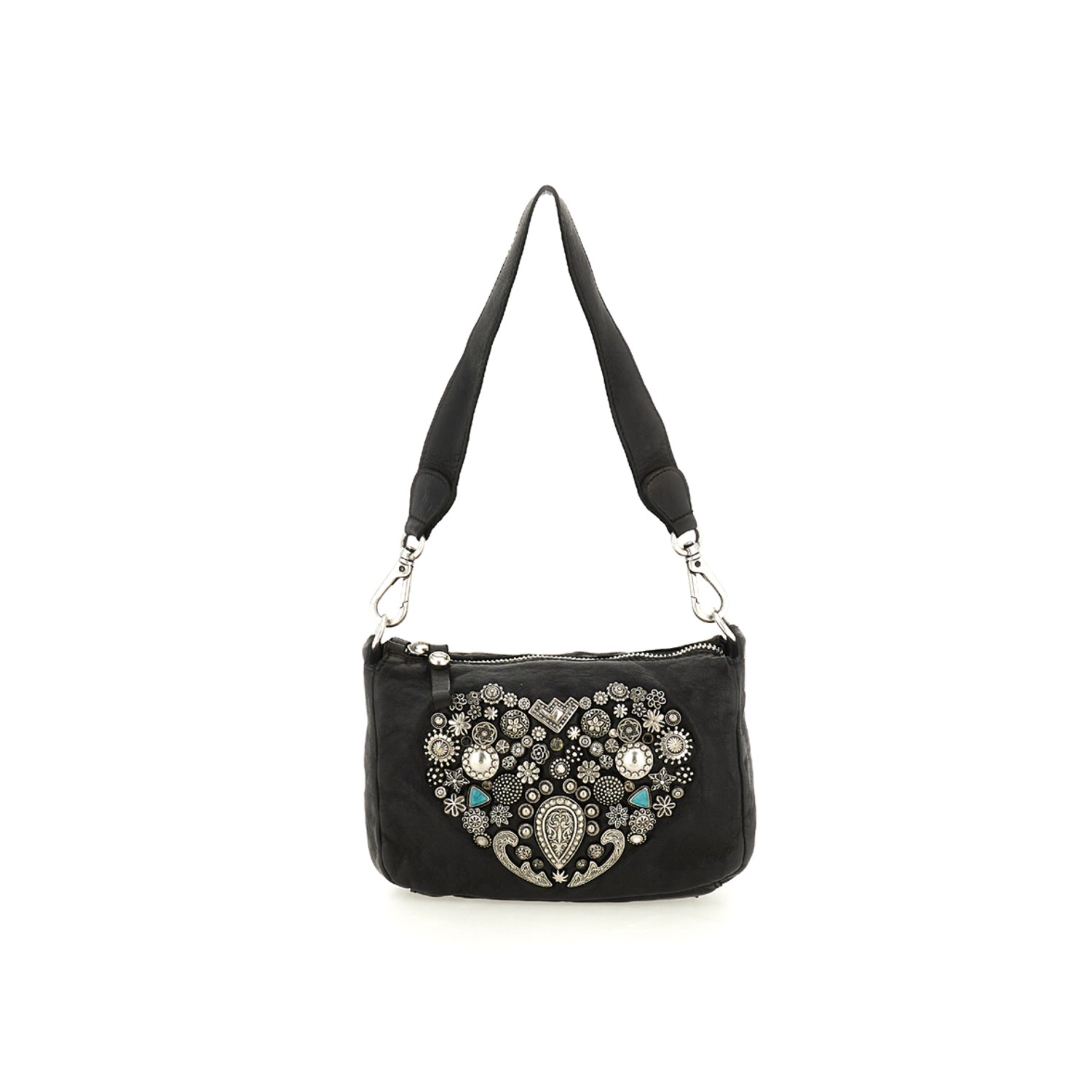 CAMPOMAGGI ДАМСКА КОЖЕНА КРОСБОДИ ЧАНТА TILDE С КАПСИ В ЧЕРНО