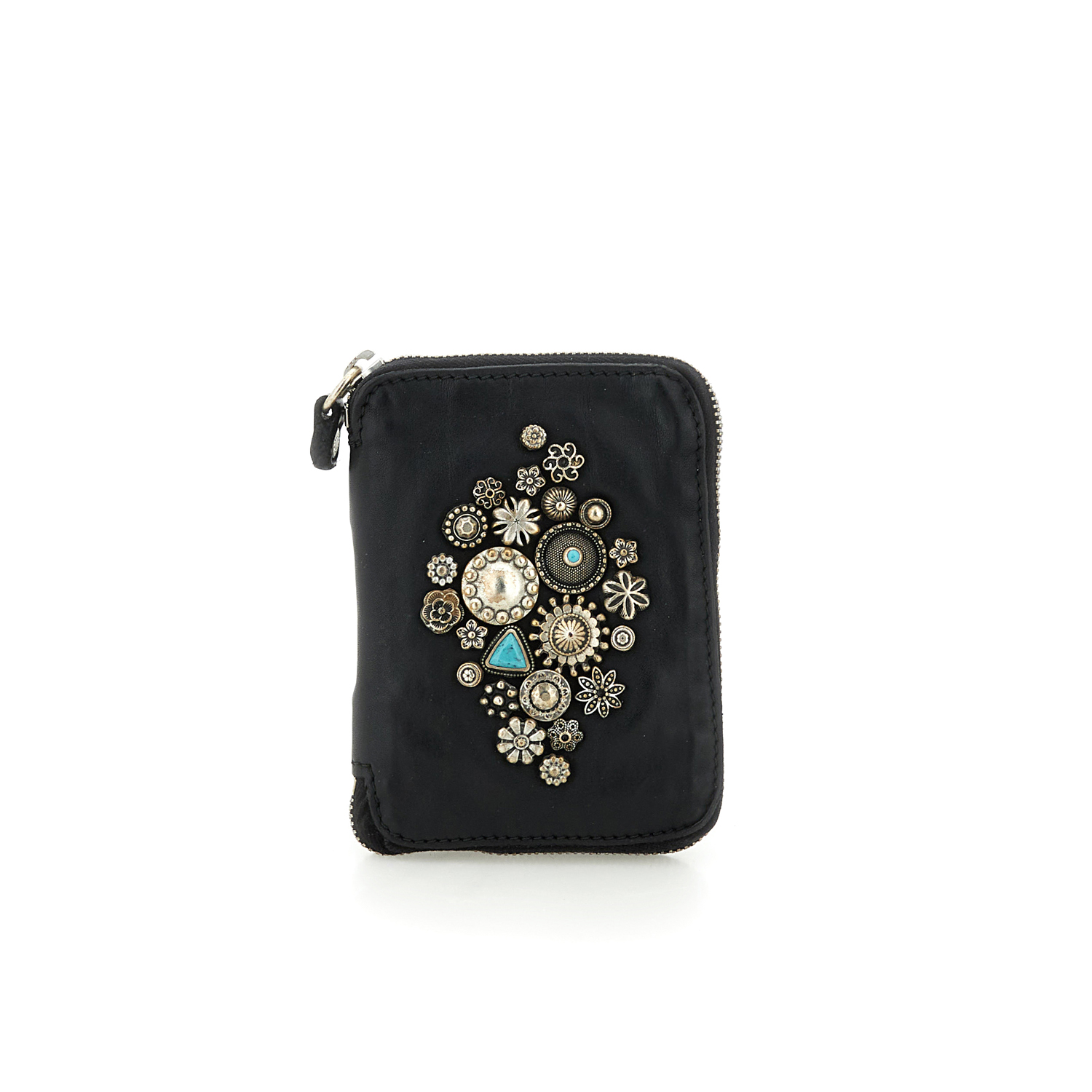 CAMPOMAGGI ДАМСКО КОЖЕНО ПОРТМОНЕ С ЦИП TOSCA С КАПСИ И КАМЪНИ В ЧЕРНО