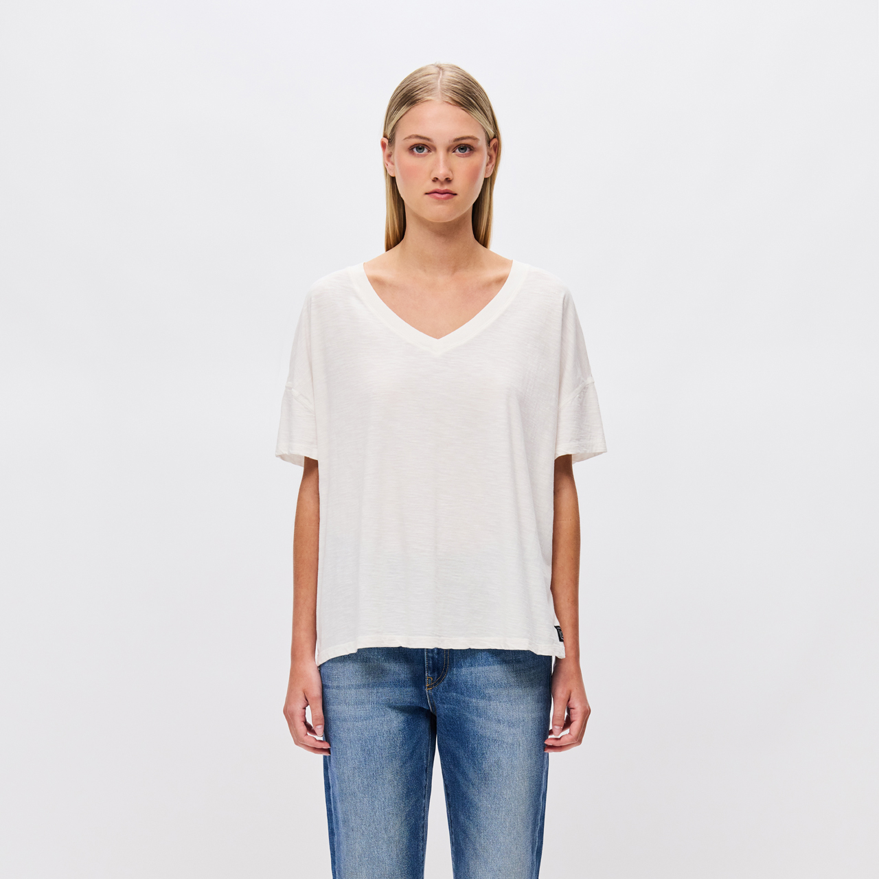 DIRTY LAUNDRY ДАМСКИ ТОП OVERSIZED V-NECK T-SHIRT В БЯЛО