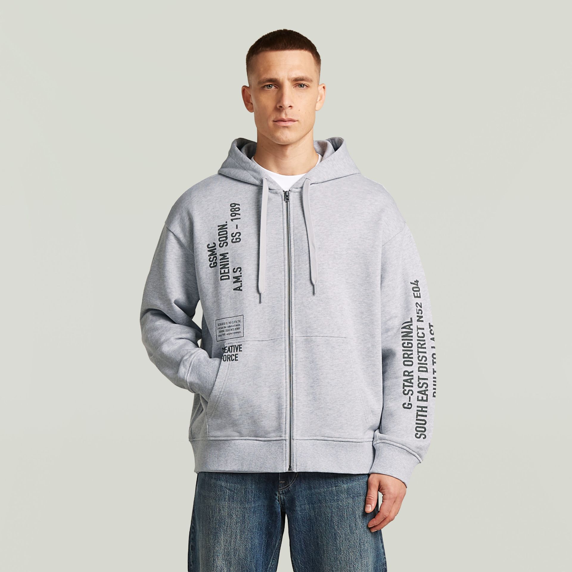 G-STAR МЪЖКИ СУИТШЪРТ STENCIL GR RELAXED HOODED ZIP SWEATER В LIGHT GREY HTR