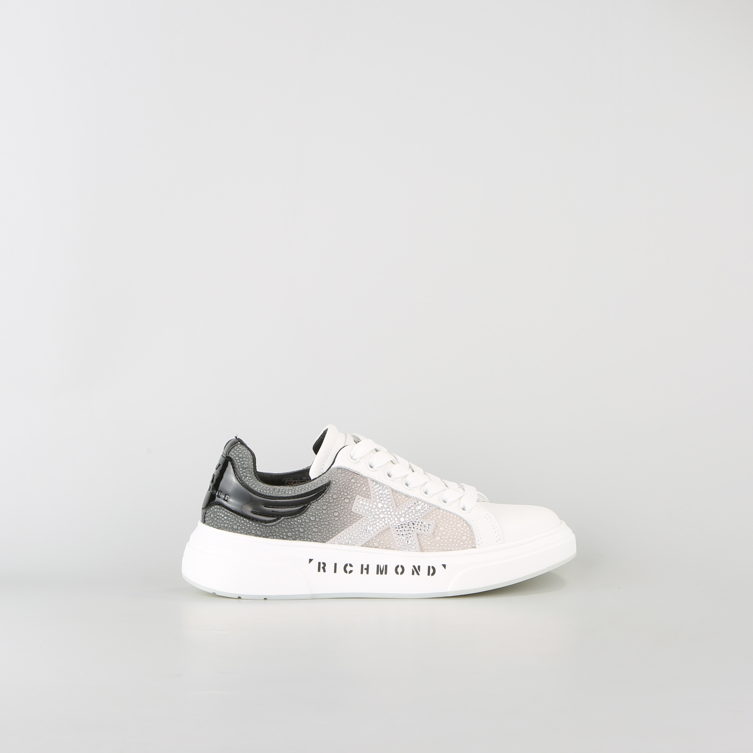 JOHN RICHMOND ДАМСКИ JR ONE КОЖЕНИ СПОРТНИ ОБУВКИ С ПРЕЛИВАЩИ МЪНИСТА В БЯЛО