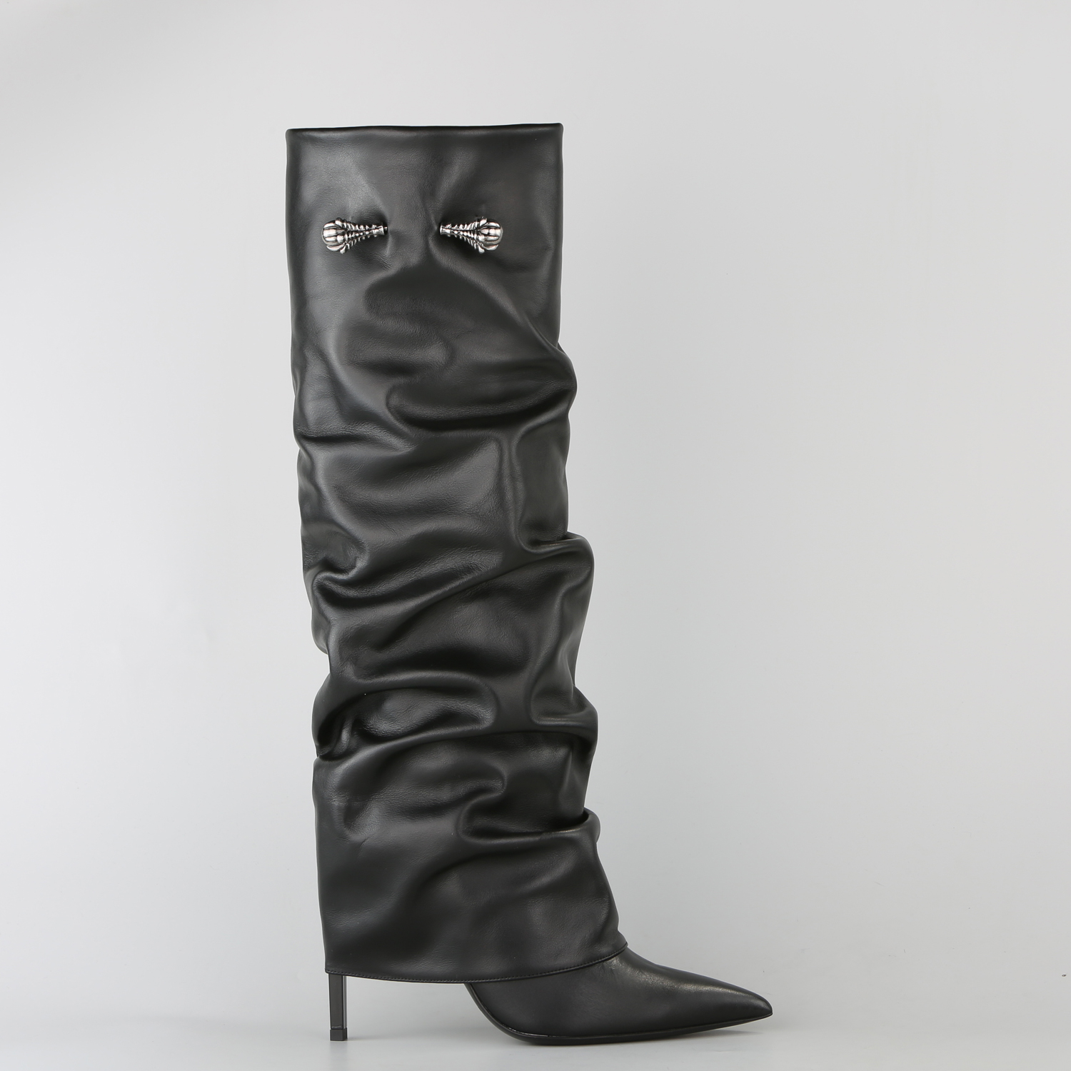 JOHN RICHMOND ДАМСКИ КОЖЕНИ БОТУШИ CORE С МЕТАЛЕН АКСЕСОАР В ЧЕРНО