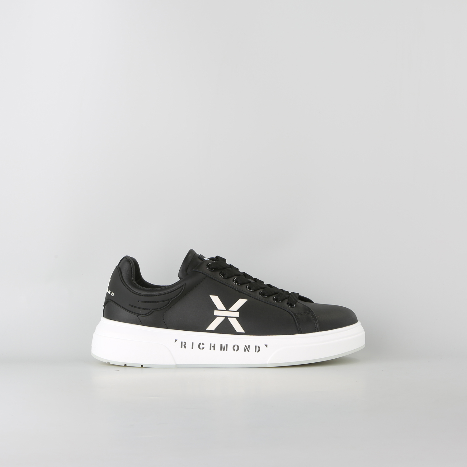 JOHN RICHMOND МЪЖКИ JR ONE КОЖЕНИ СПОРТНИ ОБУВКИ С ЛОГО ПРИНТ В ЧЕРНО