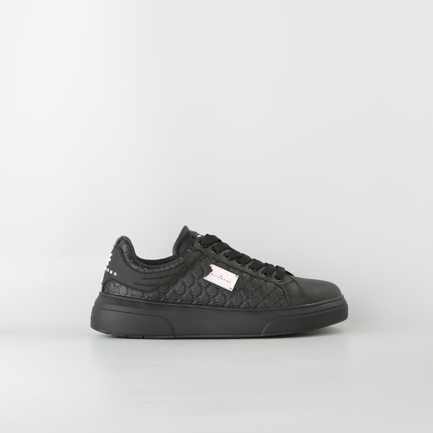 JOHN RICHMOND МЪЖКИ JR ONE КОЖЕНИ СПОРТНИ ОБУВКИ С РЕЛЕФЕН МОНОГРАМ В ЧЕРНО