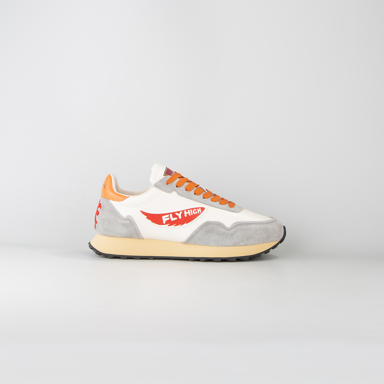 JOHN RICHMOND МЪЖКИ ОБУВКИ SUKAJAN MIXED LEATHER SNEAKERS WITH USED EFFECT - СВЕТЛОСИВО/ БЯЛО/ ОРАНЖ