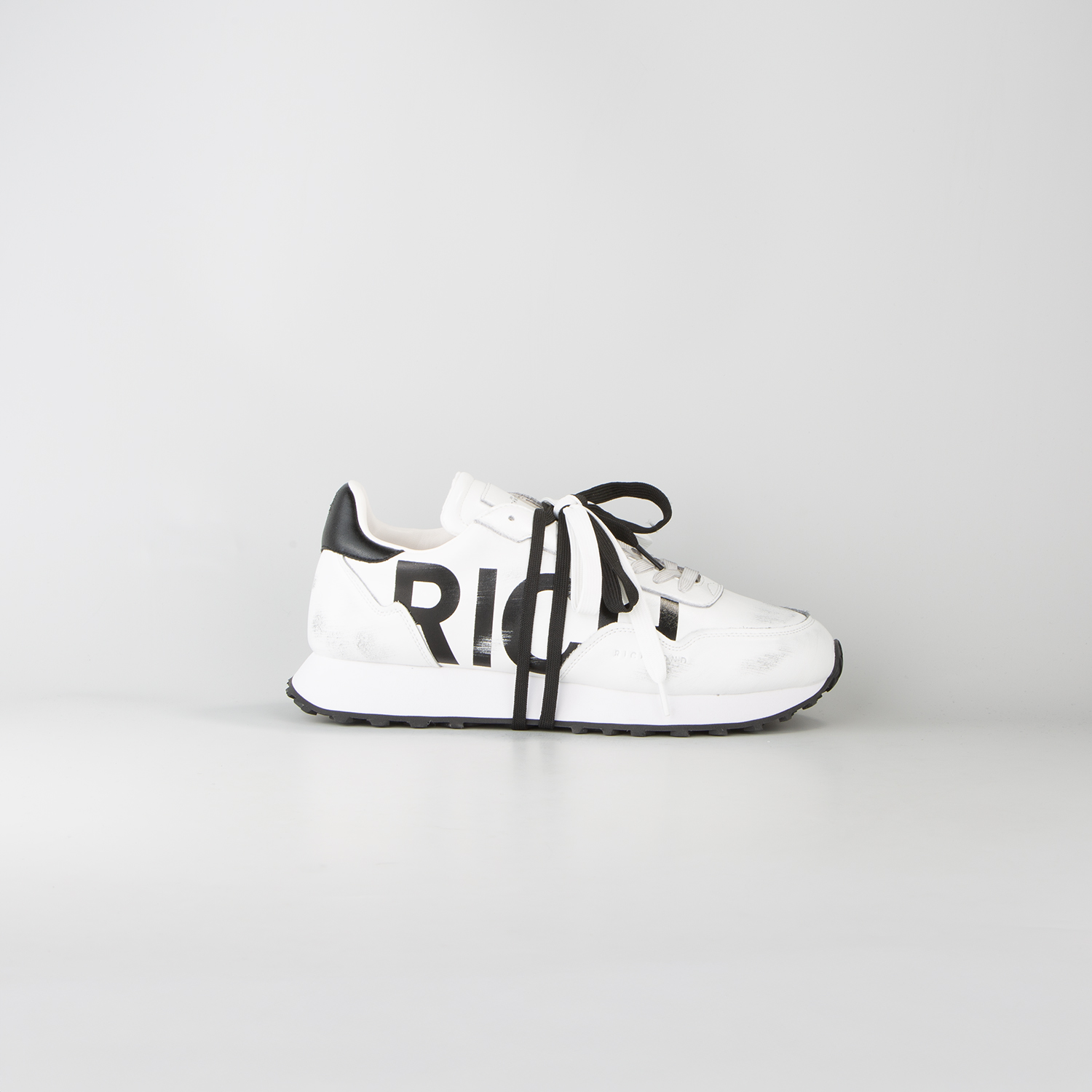 JOHN RICHMOND МЪЖКИ ОБУВКИ THE RICH RUNNER WITH RICH PRINT AND USED EFFECT - БЯЛО/ЧЕРНО
