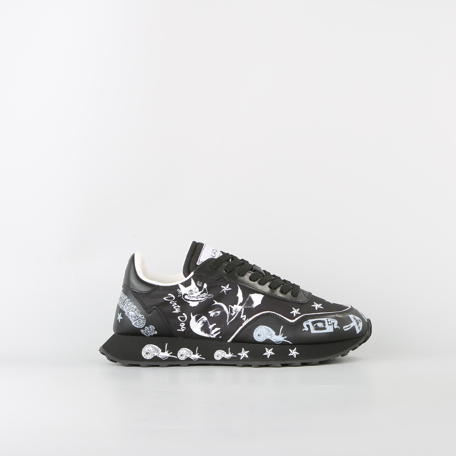 JOHN RICHMOND МЪЖКИ SUKAJAN СПОРТНИ ОБУВКИ ОТ МИКС КОЖИ С ПРИНТОВЕ В ЧЕРНО