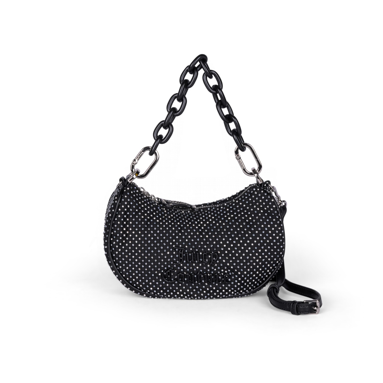 JUICY COUTURE BLOSSOM МАЛКА ДАМСКА ХОБО ЧАНТА С КАМЪНИ В ЧЕРНО