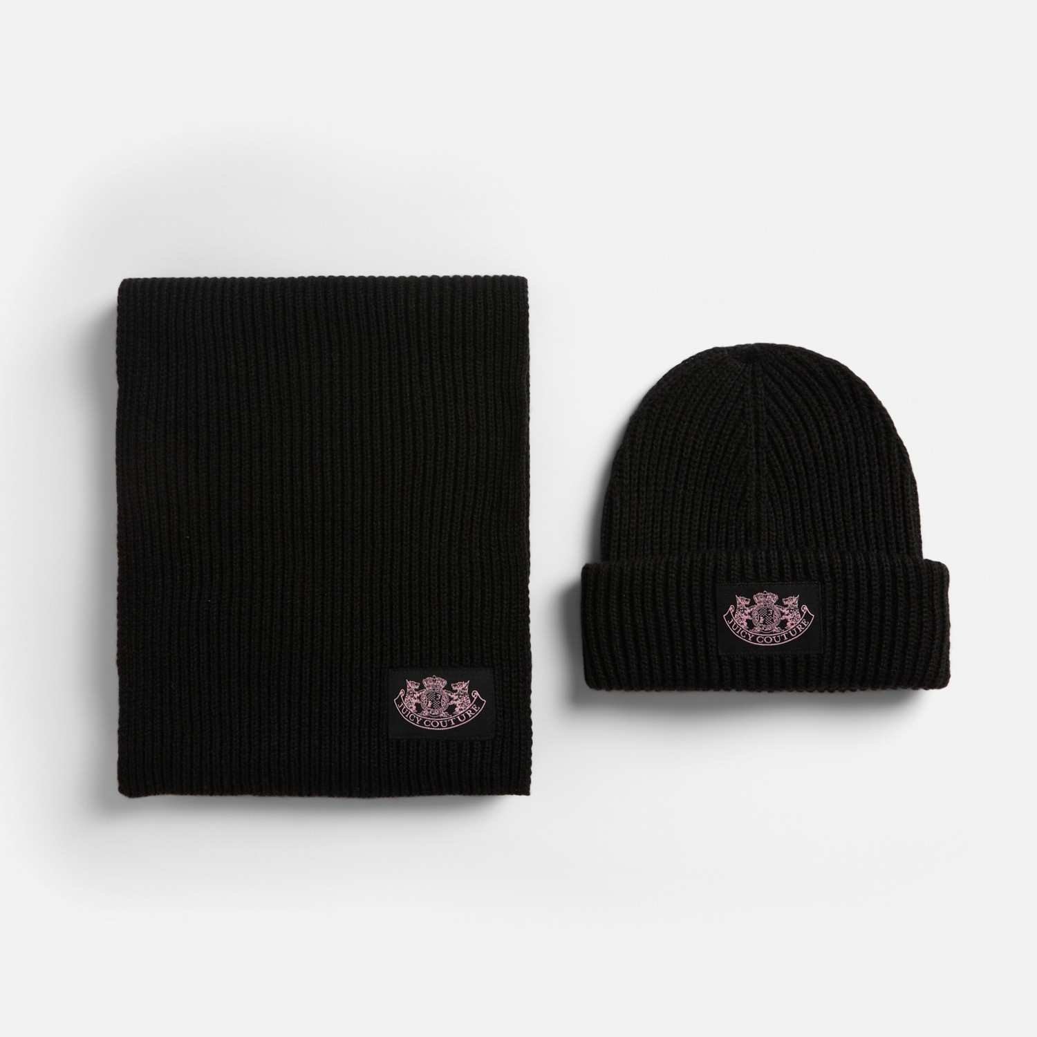 JUICY COUTURE ДАМСКИ СЕТ ОТ ШАПКА И ШАЛ DOG CREST В ЧЕРНО