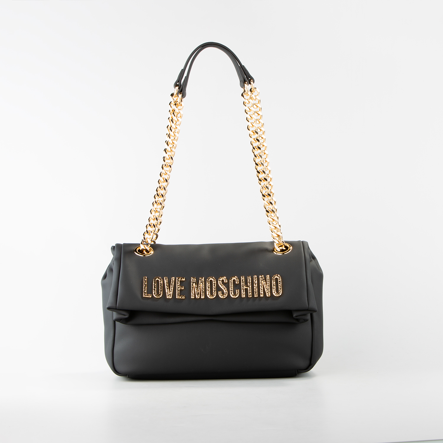 LOVE MOSCHINO BOLD LOVE ДАМСКА ЧАНТА ПРЕЗ РАМО С РЕЛЕФНО ЛОГО В ЧЕРНО