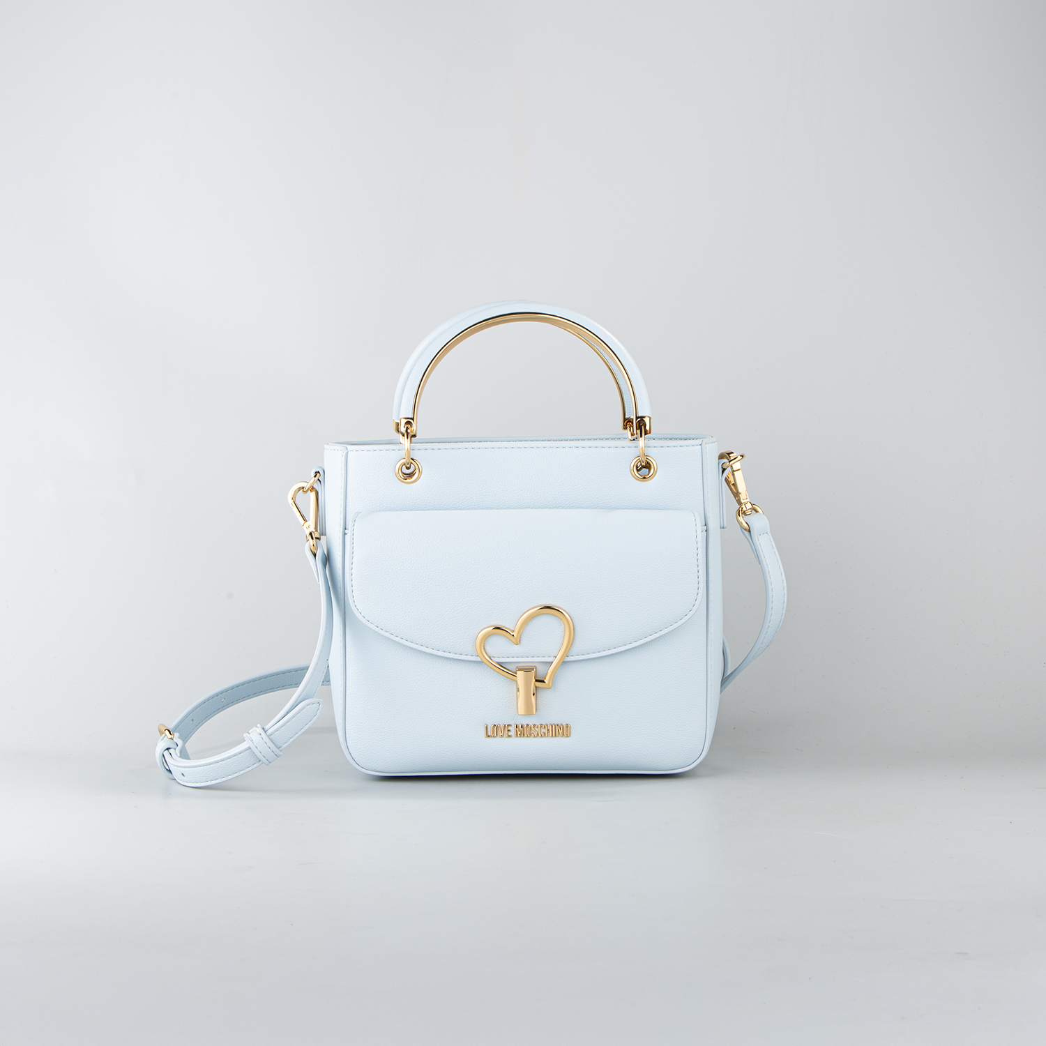 LOVE MOSCHINO МАЛКА ДАМСКА ШОПЪР ЧАНТА HEART TURNLOCK В СВЕТЛОСИНЬО