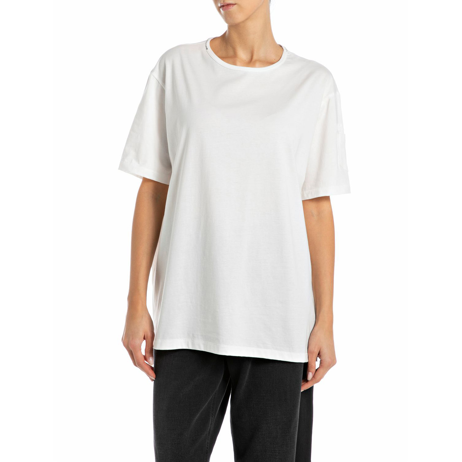 REPLAY ДАМСКА БЛУЗА ОТ ЖАРСЕ С ДЖОБ НА РАМОТО В БЯЛО