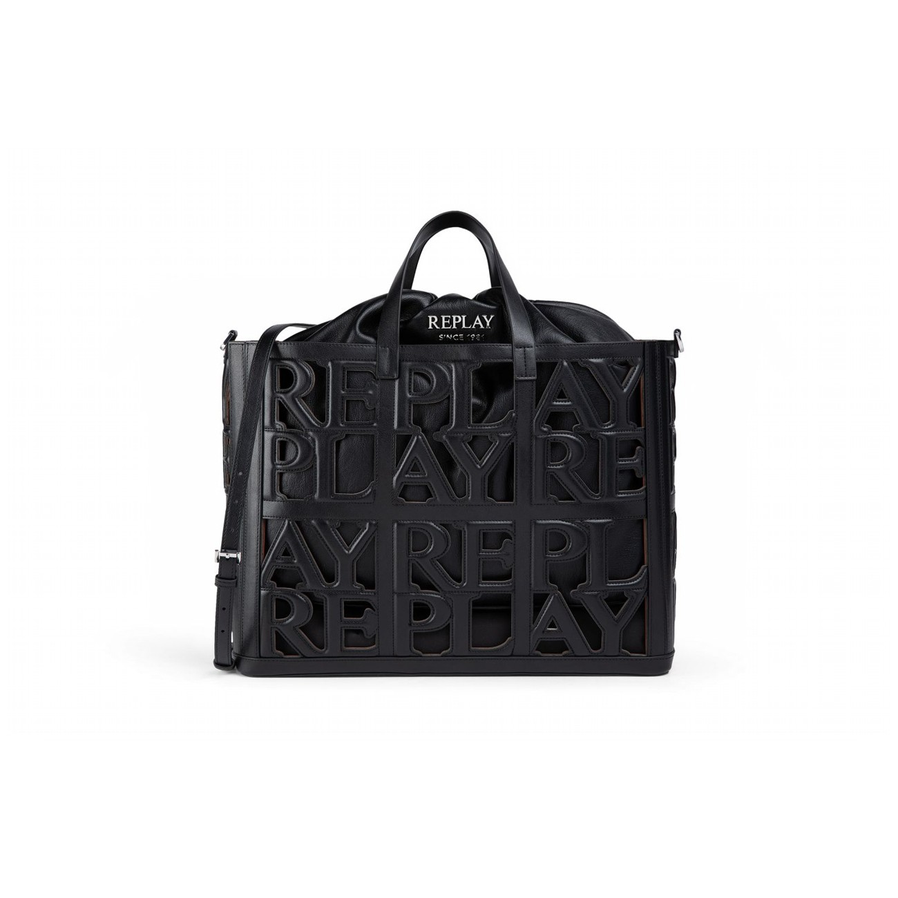 REPLAY ДАМСКА ЧАНТА BAG IN BAG SHOPPER В ЧЕРНО+КЕМБРИДЖ КАФЯВО