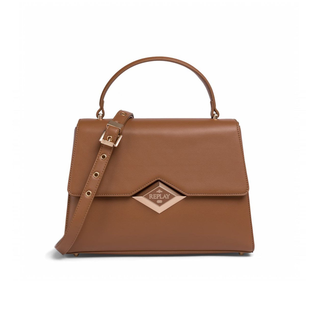 REPLAY ДАМСКА ЧАНТА MEDIUM BAG IN SOFT PU WITH METALLIC DIAMOND LOGO В КАРАМЕЛЕНО КАФЕ