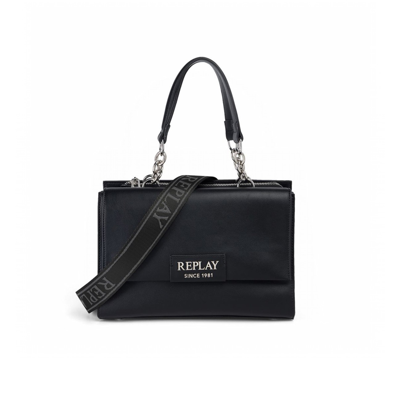 REPLAY ДАМСКА ЧАНТА SOLID-COLOURED BAG WITH CHAIN HANDLE AND SHOULDER STRAP В ЧЕРНО