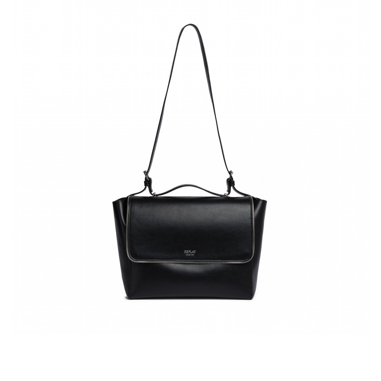 REPLAY ДАМСКА ЧАНТА SOLID-COLOURED WITH SHOULDER STRAP AND HANDLE В ЧЕРНО