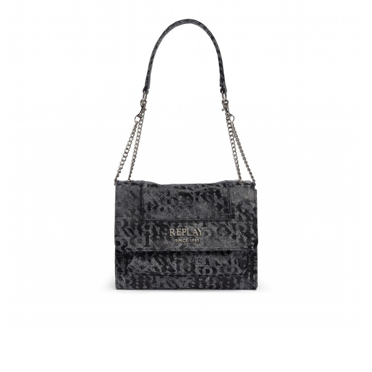 REPLAY ДАМСКА ЧАНТА ЗА РАМО CROSSBODY BAG IN PRINTED DENIM В ЧЕРНО