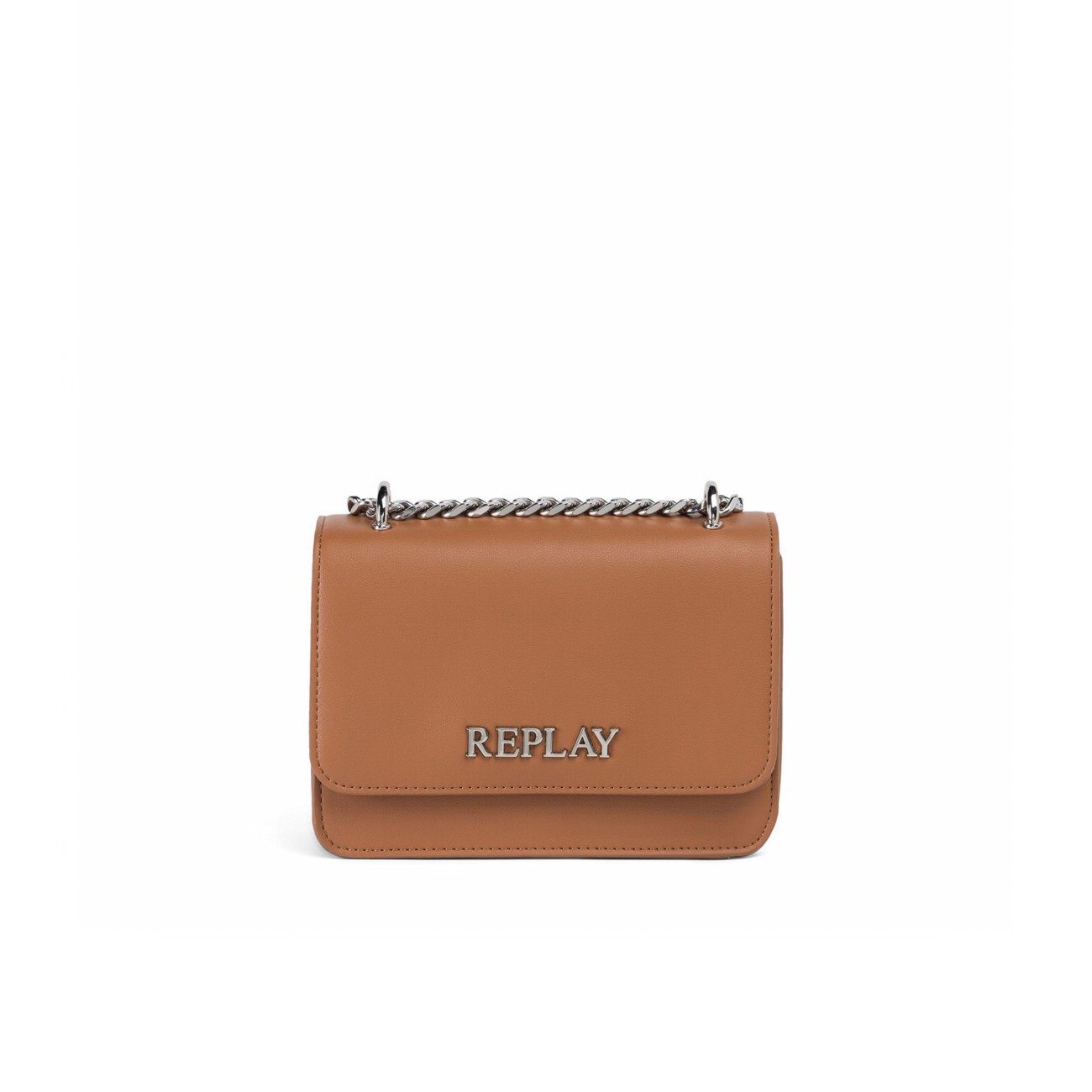 REPLAY ДАМСКА ЧАНТА ЗА РАМО CROSSBODY BAG WITH CHAIN В КАРАМЕЛЕНО КАФЕ