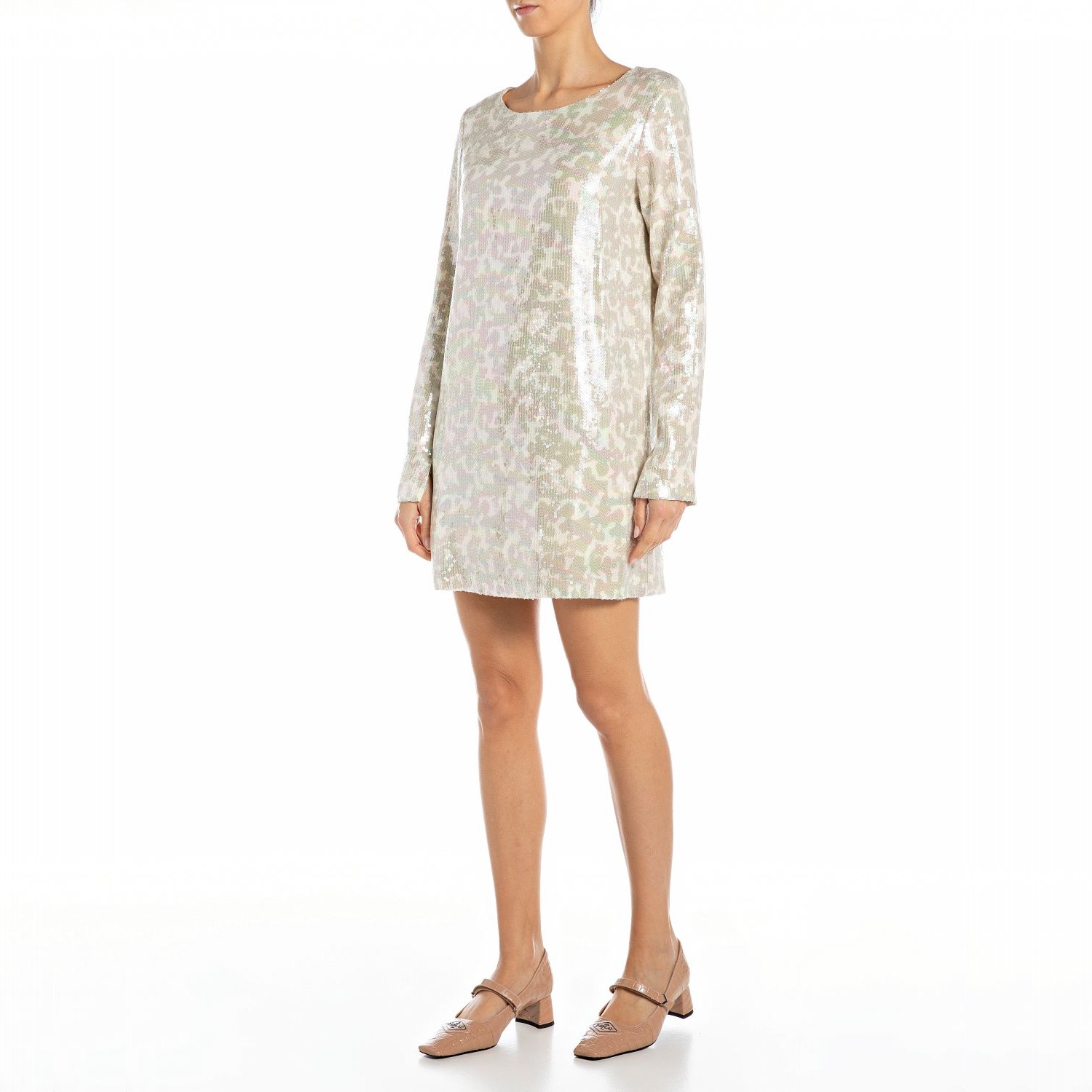REPLAY ДАМСКА КЪСА РОКЛЯ С ПАЙЕТИ В БЯЛО И КАФЯВО
