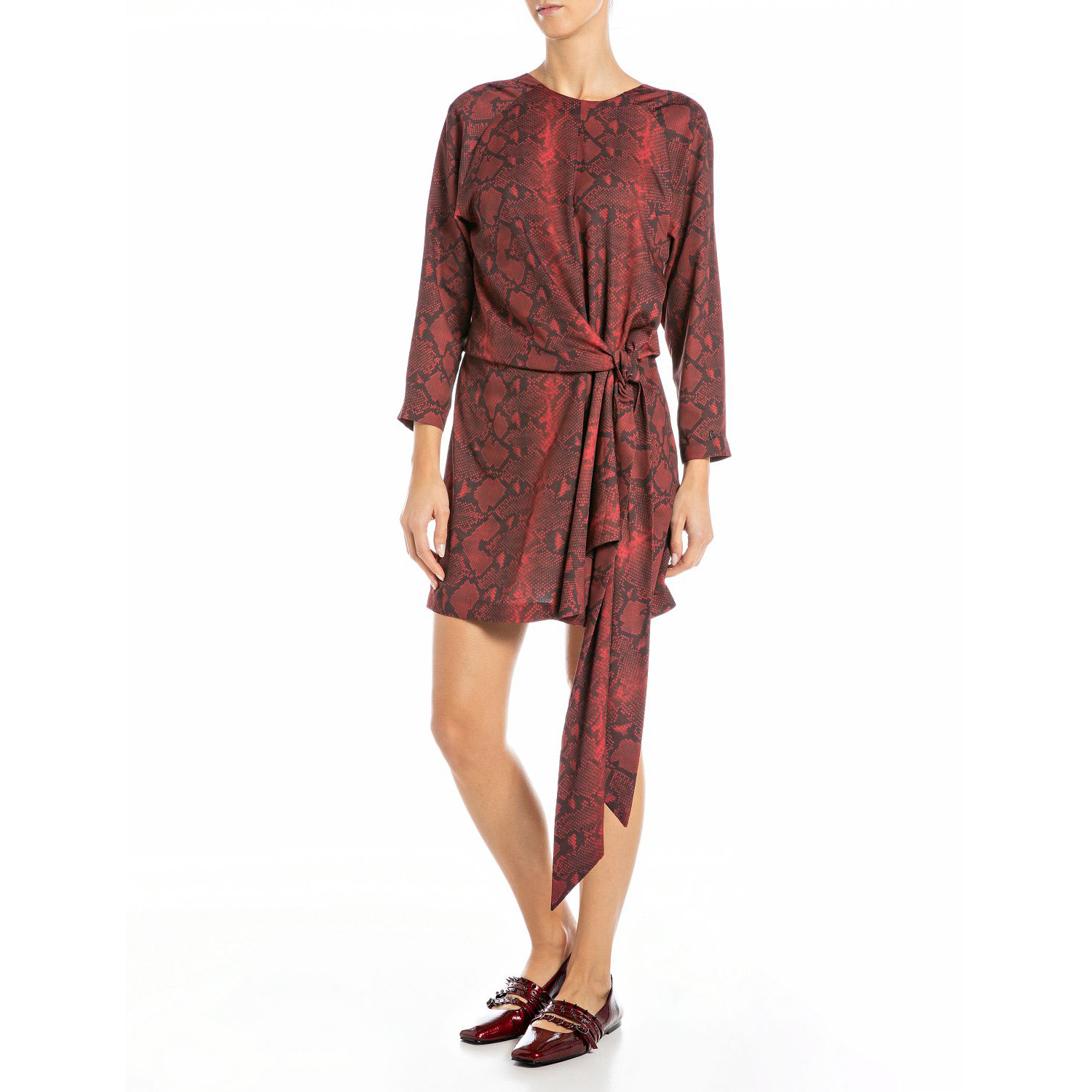 REPLAY ДАМСКА КЪСА РОКЛЯ С ПРИНТ ЗМИЯ В КАФЕНО И ВИНЕНО