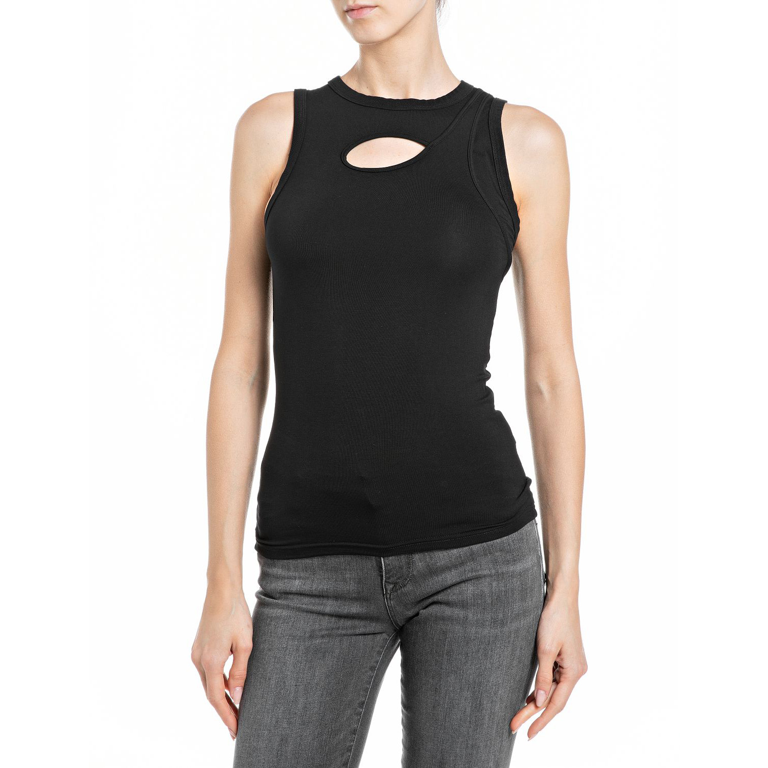 REPLAY ДАМСКИ ТОП SLIM-FIT STRETCH RAYON JERSEY TOP В ЧЕРНО