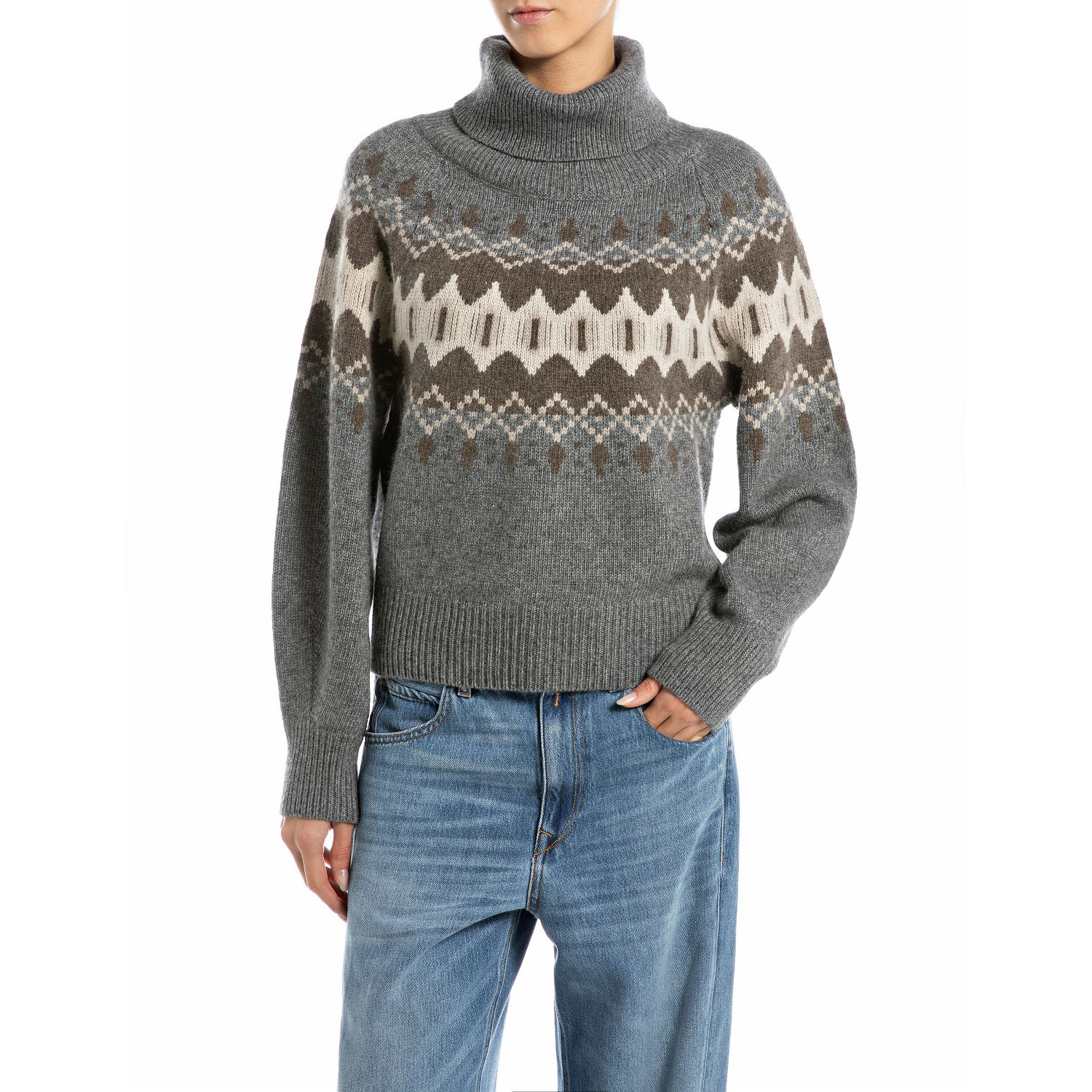 REPLAY ДАМСКИ ВЪЛНЕН ПУЛОВЕР С ВИСОКА ЯКА В СИВО/СРЕБРИСТО/БЯЛО/КАФЯВО