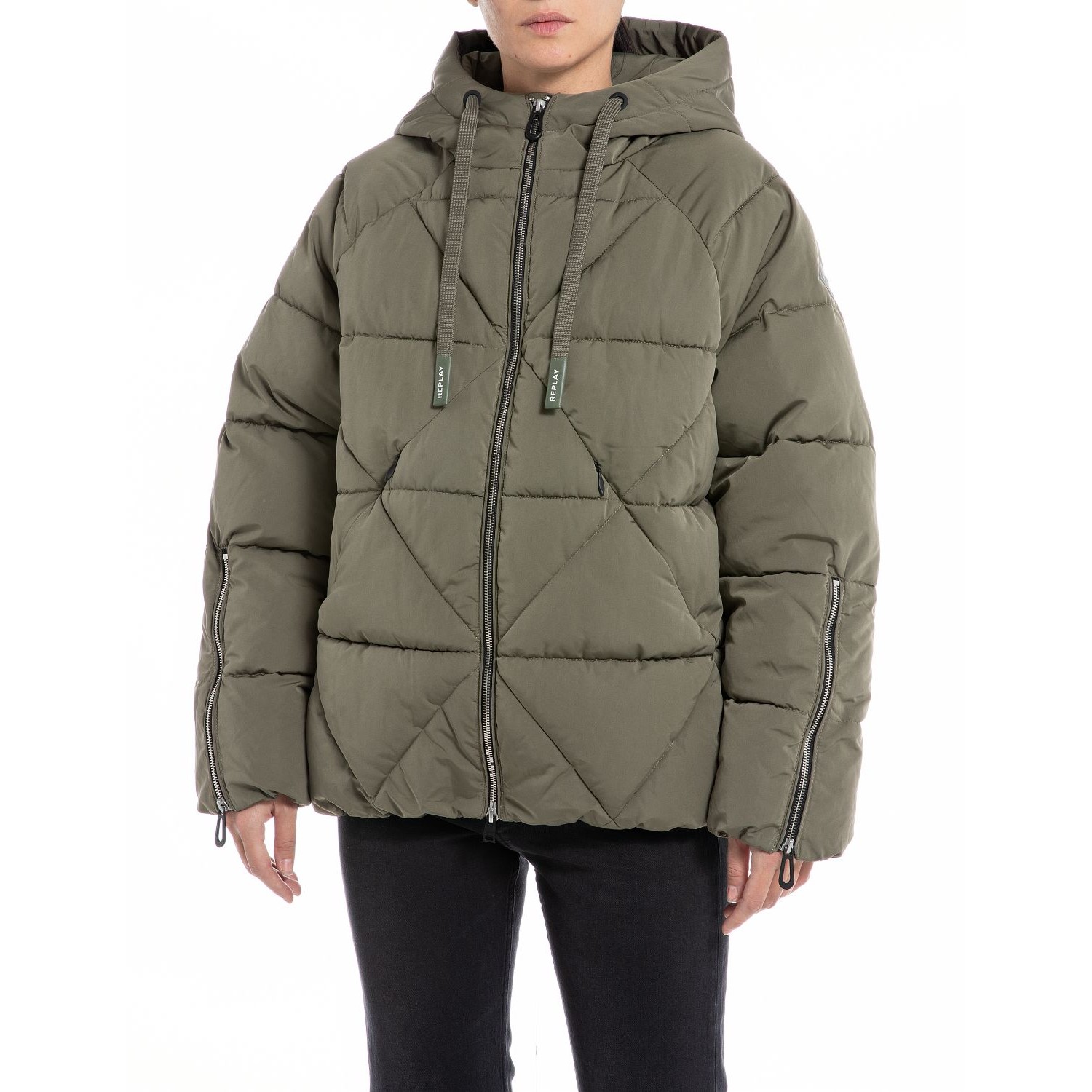 REPLAY ДАМСКО ЯКЕ SHORT JACKET IN NYLON WITH ZIPPER В ЗЕЛЕНО