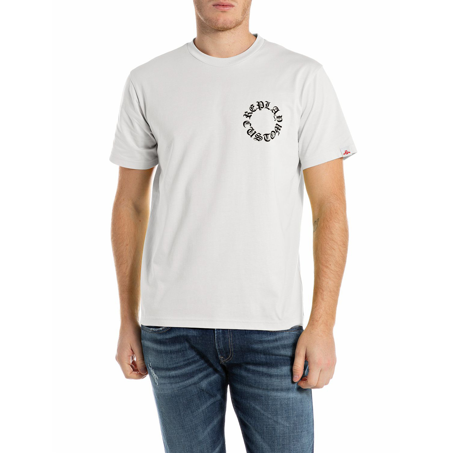 REPLAY МЪЖКА BASIC ПАМУЧНА БЛУЗА С ПРИНТ CUSTOM REPLAY В БЯЛО