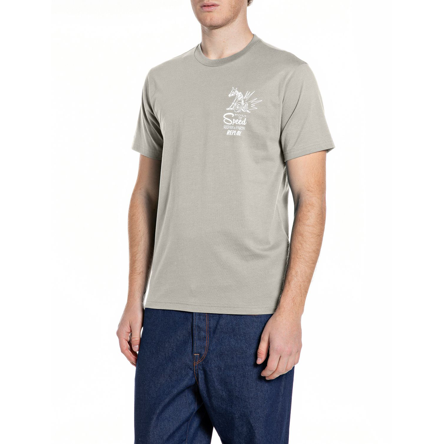 REPLAY МЪЖКА БЛУЗА JERSEY T-SHIRT WITH BIKER PRINTS BONE