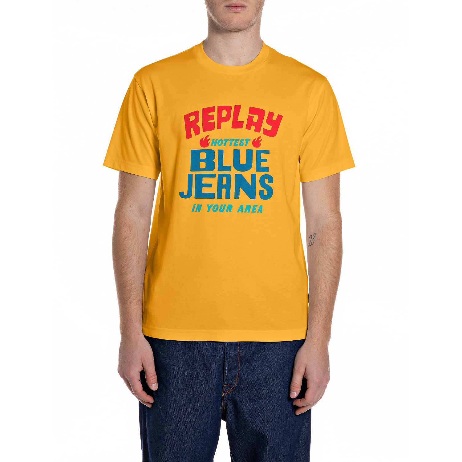 REPLAY МЪЖКА БЛУЗА JERSEY T-SHIRT WITH CHEST PRINT В ЦАРЕВИЧНО ЖЪЛТО