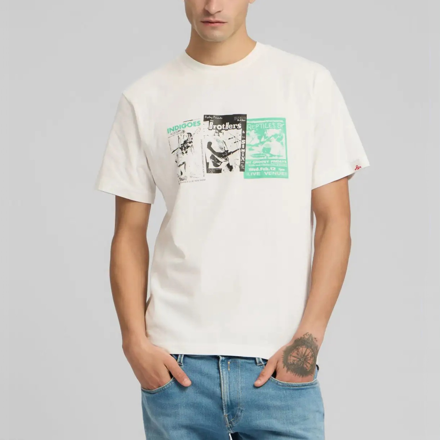 REPLAY МЪЖКА REGULAR-FIT BASIC ПАМУЧНА БЛУЗА С ПРИНТОВЕ НА ГЪРДИТЕ В БЯЛО