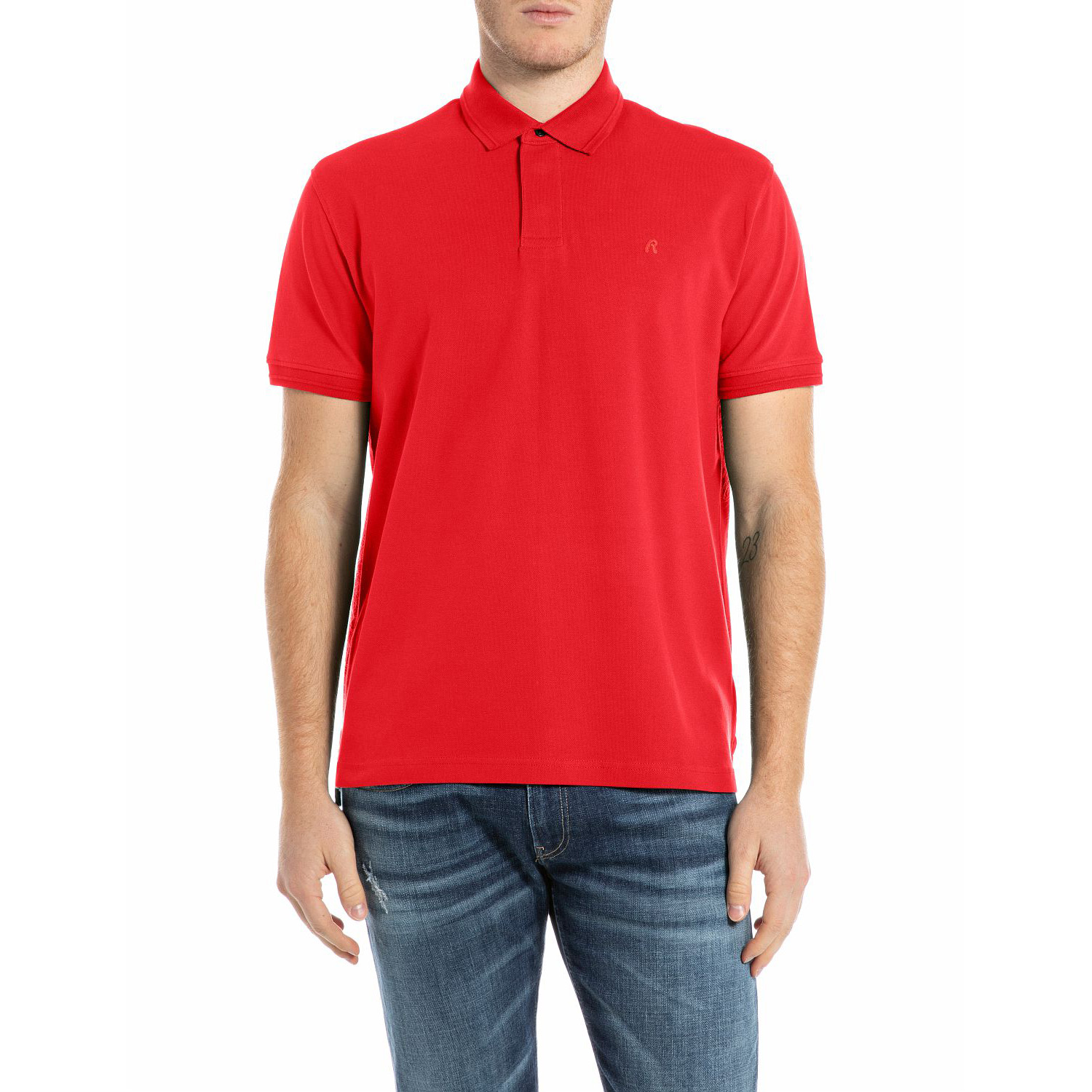 REPLAY МЪЖКА REGULAR-FIT БЛУЗА С ЯКА С БРОДЕРИЯ В ЧЕРВЕНО