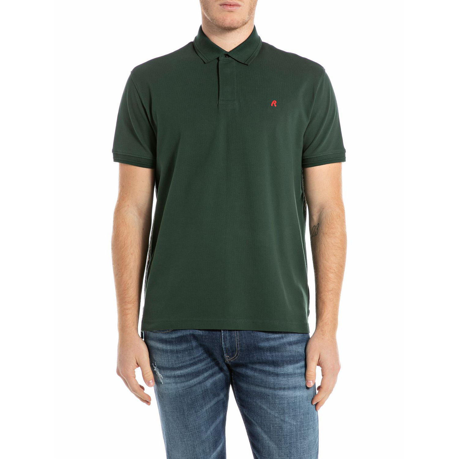 REPLAY МЪЖКА REGULAR-FIT БЛУЗА С ЯКА С БРОДЕРИЯ В ЗЕЛЕНО