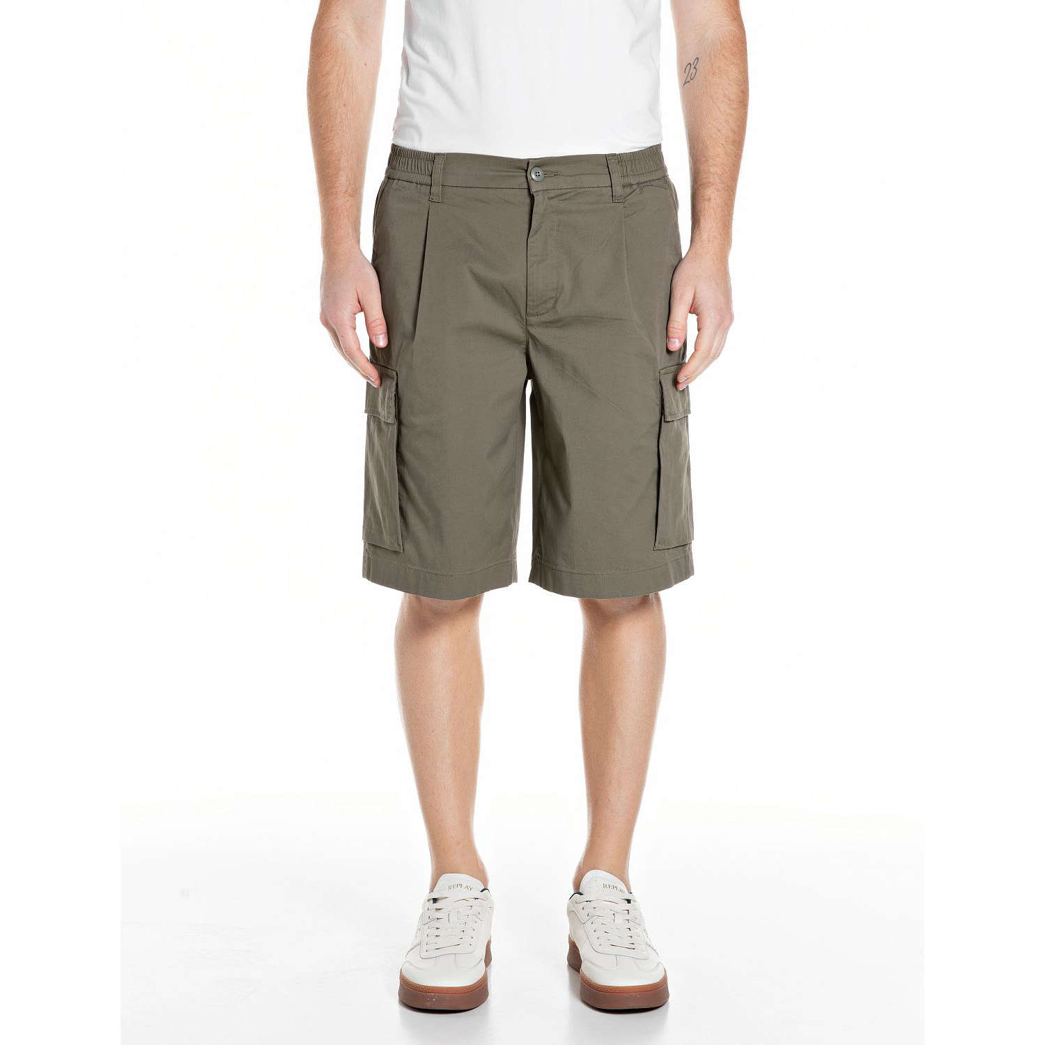 REPLAY МЪЖКИ БЕРМУДИ REGULAR FIT TWILL CARGO SHORTS В ЗЕЛЕНО