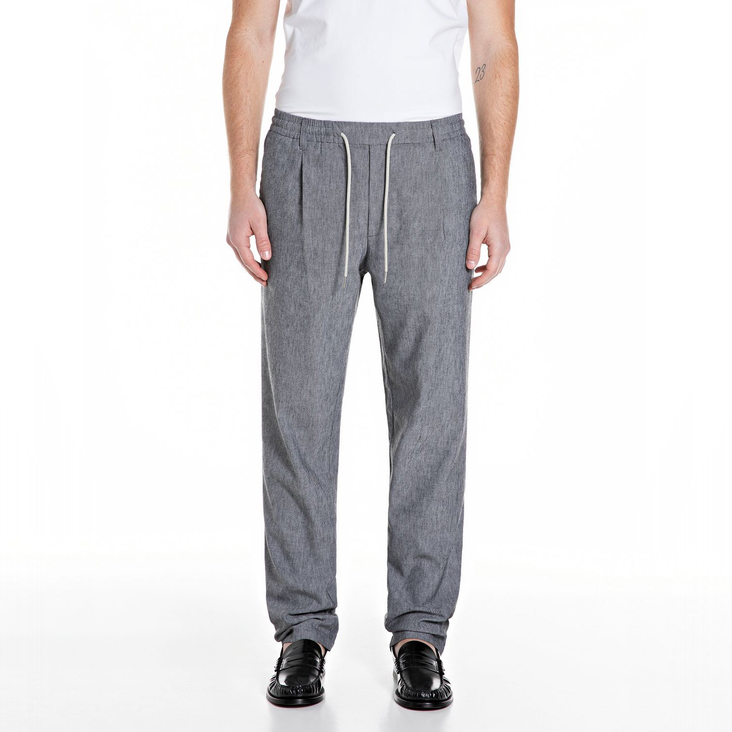 REPLAY МЪЖКИ ПАНТАЛОНИ COTTON POLY LINEN TWILL PANTS В СИВО