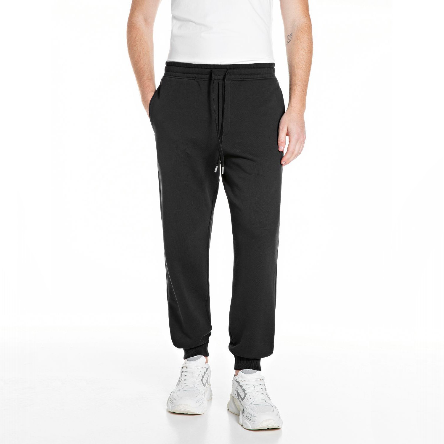 REPLAY МЪЖКИ СПОРТНИ ПАНТАЛОНИ JOGGERS WITH R EMBROIDERY В ЧЕРНО