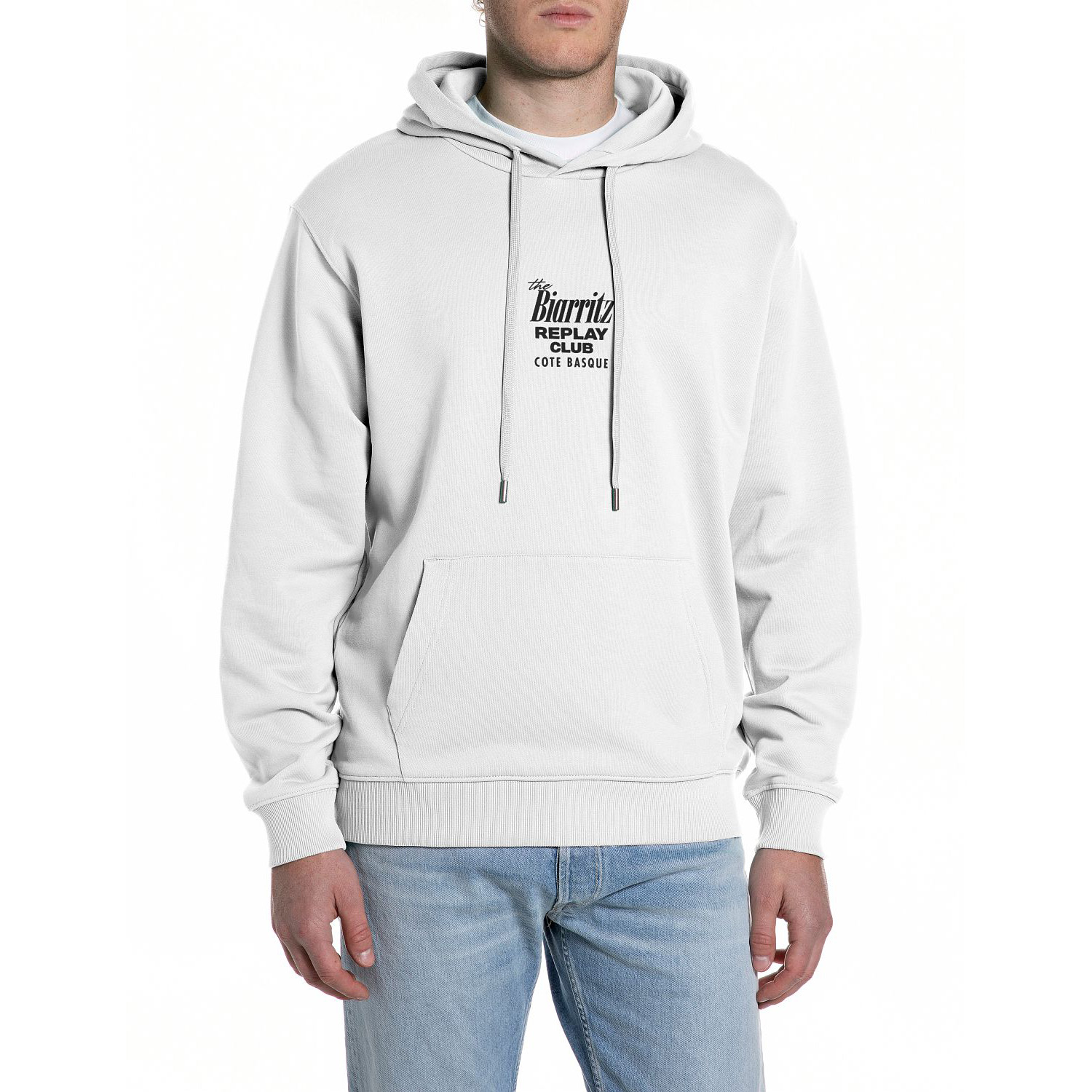 REPLAY МЪЖКИ СУИТШЪРТ HOODY WITH BIARRITZ PRINT NATURAL WHITE