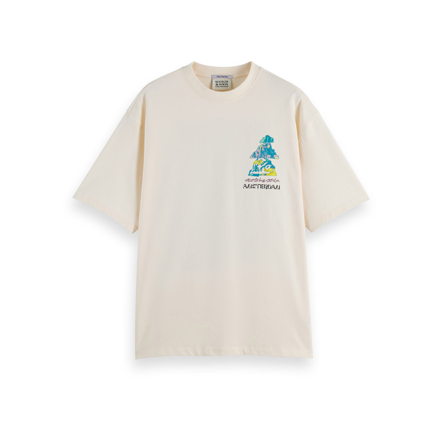 SCOTCH&SODA MEN'S LOOSE FIT FRONT AND BACK ARTWORK T-SHIRT IN WHITE