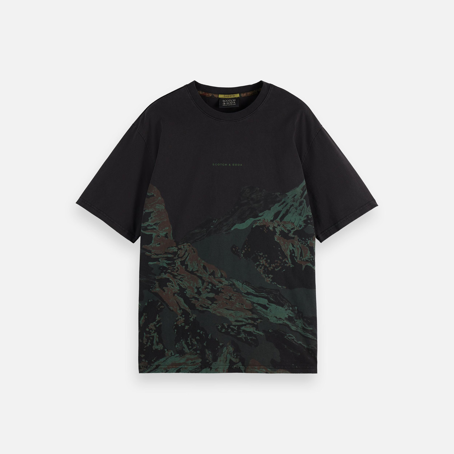 SCOTCH&SODA MEN'S LOOSE FIT OVERDYED AW T-SHIRT IN DARK GREY