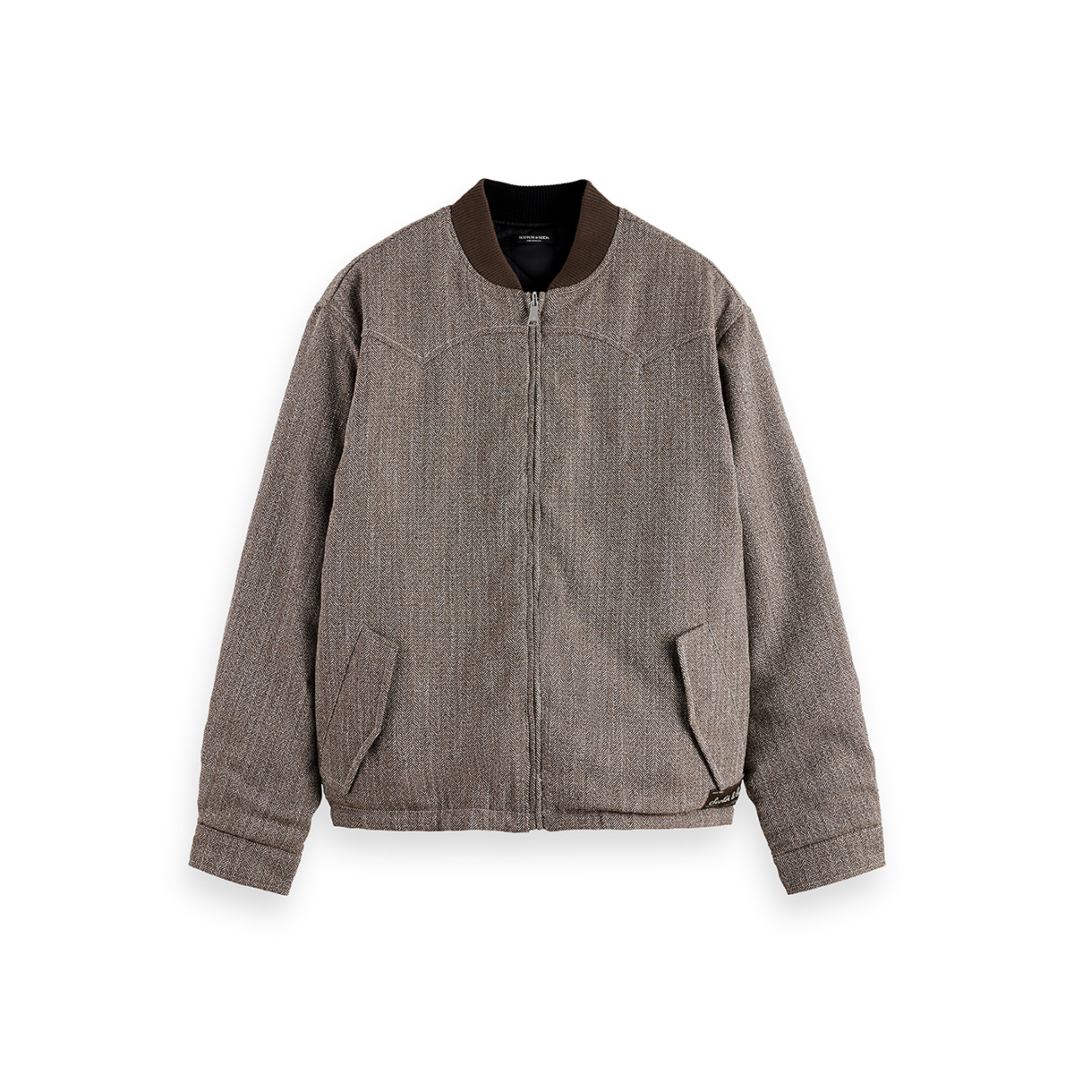 SCOTCH&SODA MEN'S REVERSIBLE YARN-DYED PADDED BOMBER JACKET IN MEDIUM BROWN