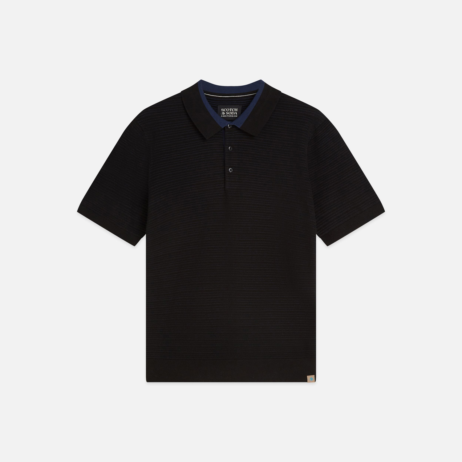 SCOTCH&SODA МЪЖКА БЛУЗА STRUCTURED KNITTED REGULAR FIT POLO В ЧЕРНО