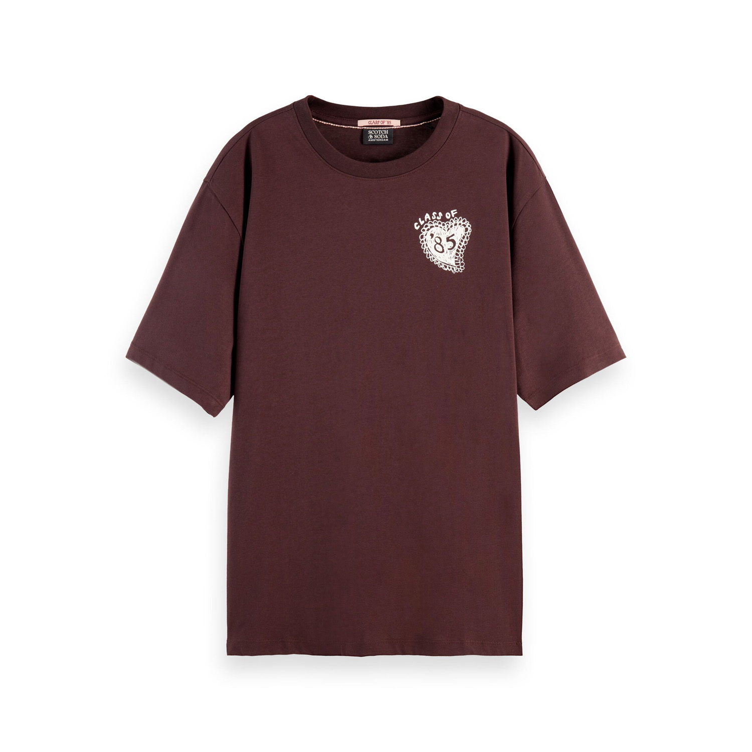 SCOTCH&SODA WOMEN'S ARTWORK LOOSE FIT T-SHIRT IN CHOCOLATE PLUM