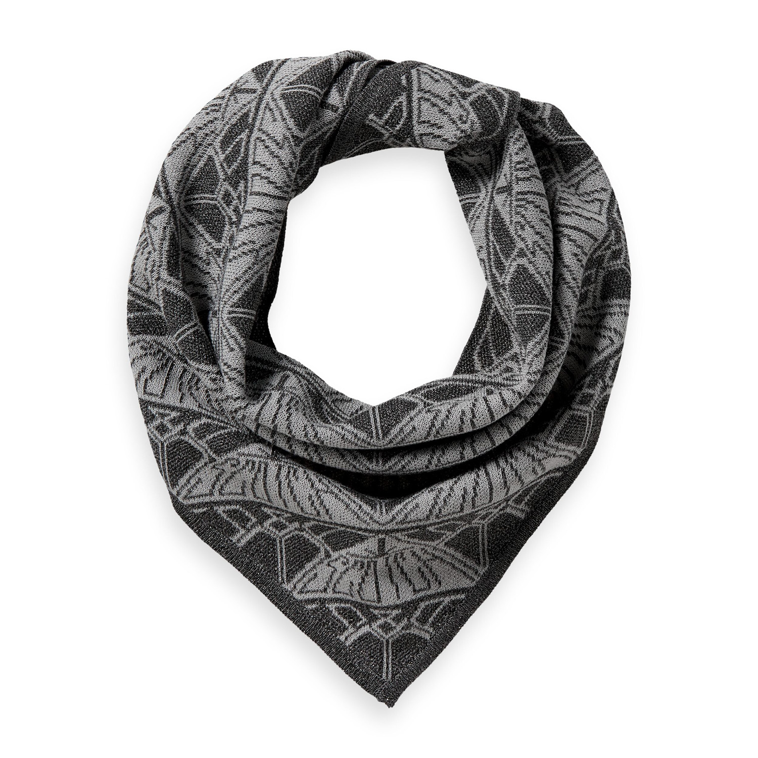 SCOTCH&SODA WOMEN'S JACQUARD KNITTED TRIANGLE SCARF IN SILVER/GUNMETAL