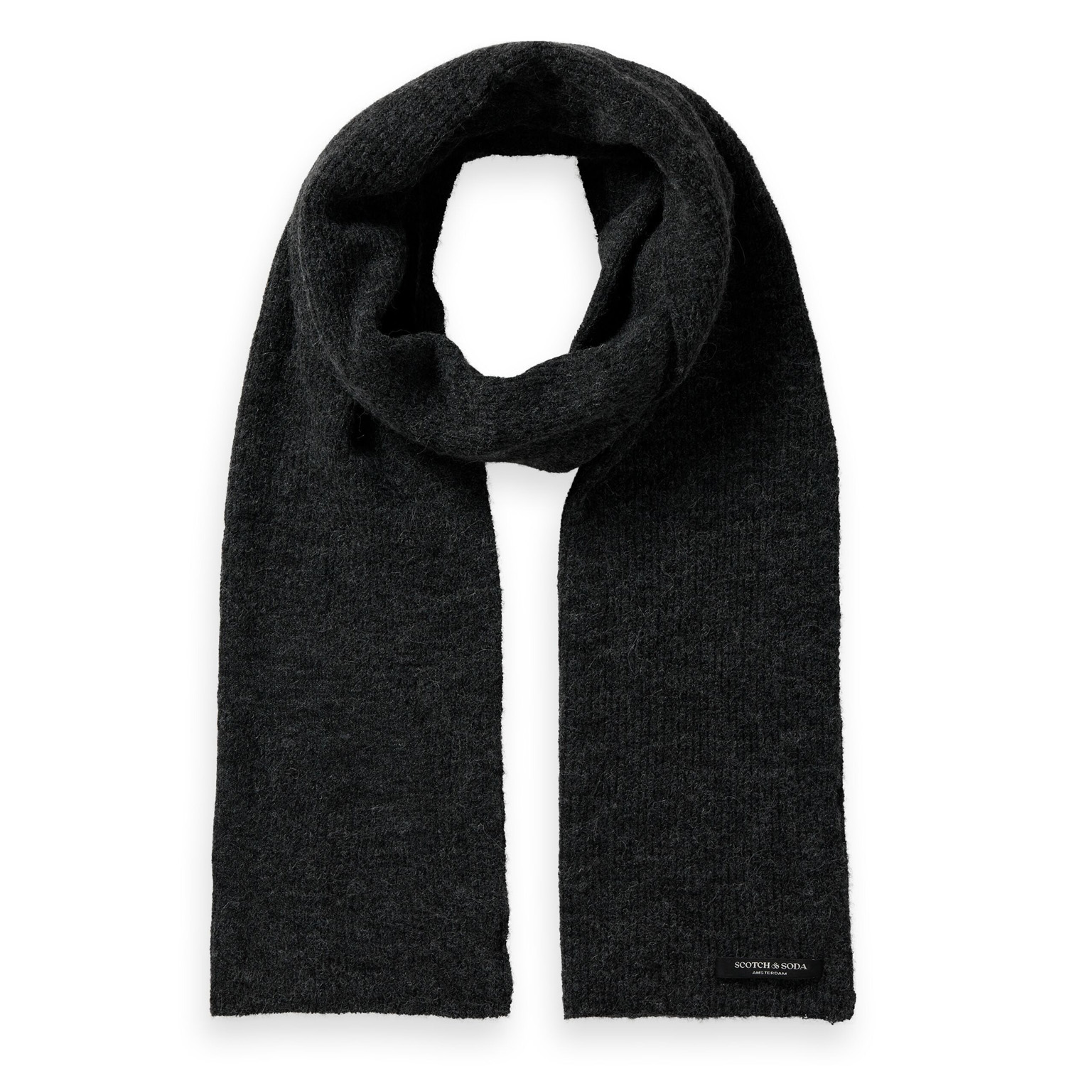 SCOTCH&SODA WOMEN'S LOGO KNITTED SCARF IN CHARCOAL MELANGE