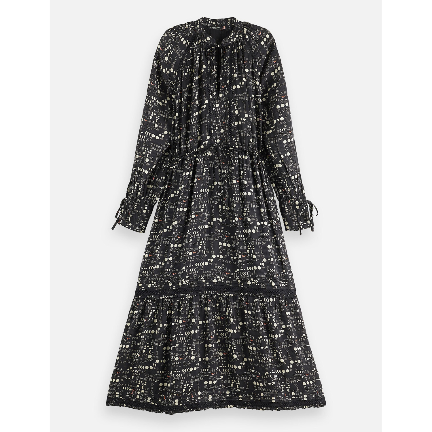 SCOTCH&SODA WOMEN'S MAXI DRESS WITH LACE DETAILS IN MOON GARDENING