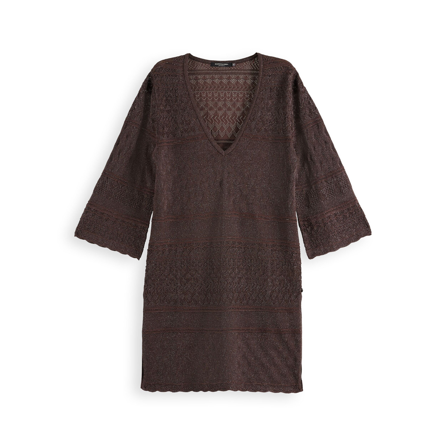 SCOTCH&SODA WOMEN'S METALLIC POINTELLE PULLOVER IN CHOCOLATE PLUM METALLIC